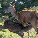 Now, antlers, I am told are actually a bone – in fact the only known instance of a bone that grows external to the body. While they do occasionally grow on the females, they are predominantly a male deer’s feature – nature’s weapon to protect their herd during the rutting season from the unwelcome advances of other wandering and possibly more dominant males. What is even more fascinating is that these antlers grow and renew every year – then they just drop off! The older the stag gets, the larger and more elaborate the antlers become – they truly are amazing. While the bone grows, they are covered with membrane which is called the ‘velvet’ which supplies oxygen and nutrients to the antler while it grows, and that is then shed like a bloody sheath at the end of its growing season.