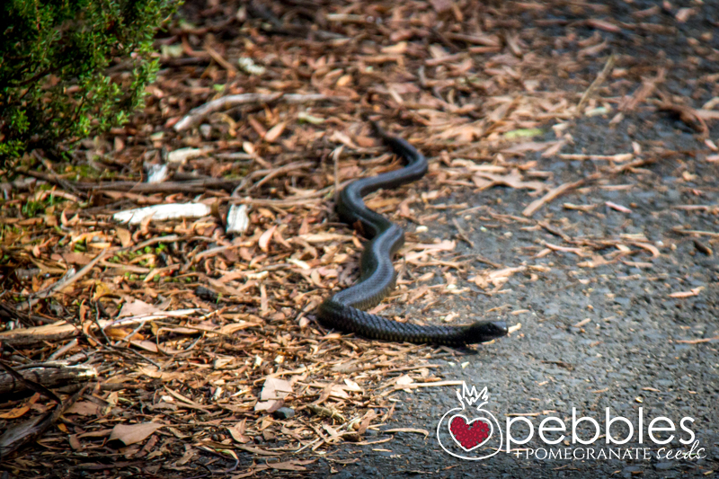 We stopped for the odd break – we brought snacks – stopping at a particular magical point in the track, breathing it all in, just listening to the silence. We didn’t really see any wildlife – other than the resident Tiger Snake back at the lodge, which I named ‘Spot’. They probably heard us coming several miles off.