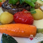 My cherry babe chose the oven roasted beef tenderloin with parisienne potatoes and glazed vegetables. At first, I admit, he was a little disappointed… he is not a dainty diner. He likes his portions big and overflowing, and tenderloins, well they are not generally an ample serve. However, his initial disappointment abated once he had his first mouthful which was filled with tenderness and flavour, so all good. And… we both had room for dessert.