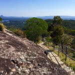 The peak is an impressive exposed face of rhyolite rock and sandstone. Like most of the jutting ‘mountains’ of the Sunshine Coast, they are remnant volcanic plugs of years gone by (as in millions of years). It is only 265metres above sea level but it is still an impressive vantage point.